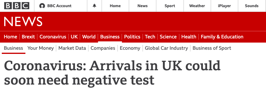这项措施是目前正在考虑防止疫情扩散的几项措施之一,目的是 "防止Covid-19在英国边境蔓延"。交通部认为旅行者在出发前的检测有助于将新病例的输入保持在绝对最低限度。