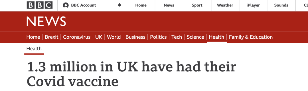英国已有130万人接种新冠疫苗