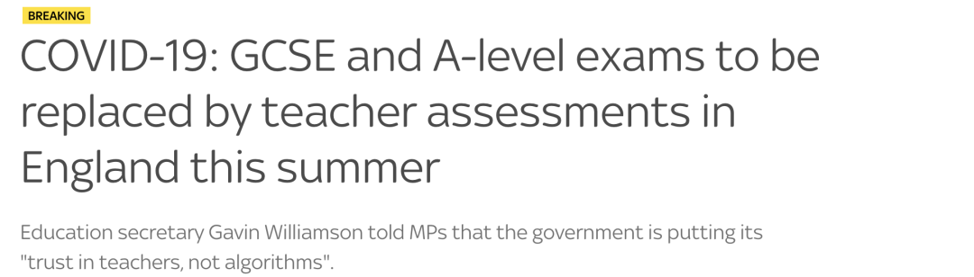 而北爱尔兰的教育部长Peter Weir,也在议会宣布今年夏天北爱尔兰学生的GCSE,AS和A级考试将被取消。