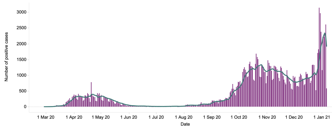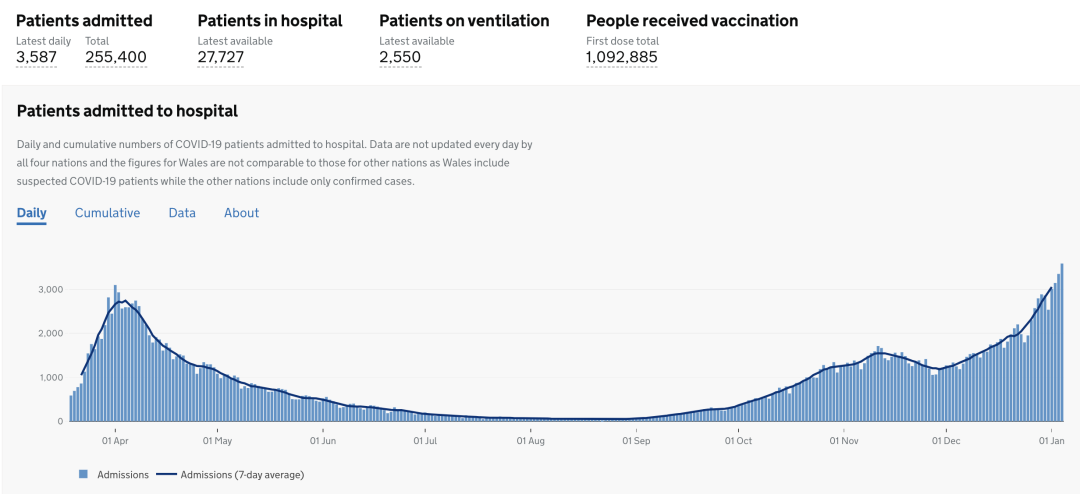 英国1月6日(周三)也是自4月以来首次突破日增病亡患者1,000例,并宣布病例数再创新高。