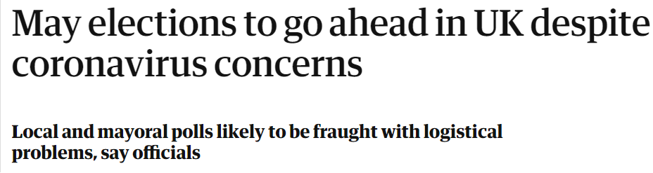 英国官员们表示,尽管新冠病毒疫情形势仍然严峻,但预计5月选举仍将继续进行。同时警告称,这次选举可能是英国所经历的,在后勤上最为棘手的选举之一。