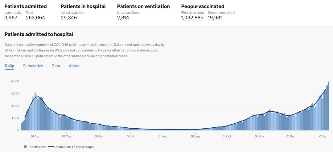 Boris Johnson也警告说,不要因为疫苗推广所带来的"新希望"而自满。同时向全国人民发出了遵守规则的请求: "现在比以往任何时候都更重要,我们的医院所承受的压力比疫情开始以来的任何时候都大,整个国家的感染率继续以惊人的速度飙升。"