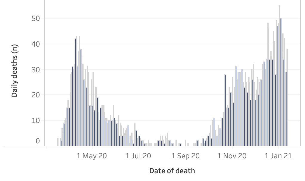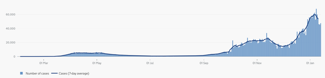 截止至2021年1月14日(周四)英国时间09:00,累计检测结果量58,891,289次(待更新);累计确诊3,260,258例(+48,682);累计病亡84,767例(待更新)。