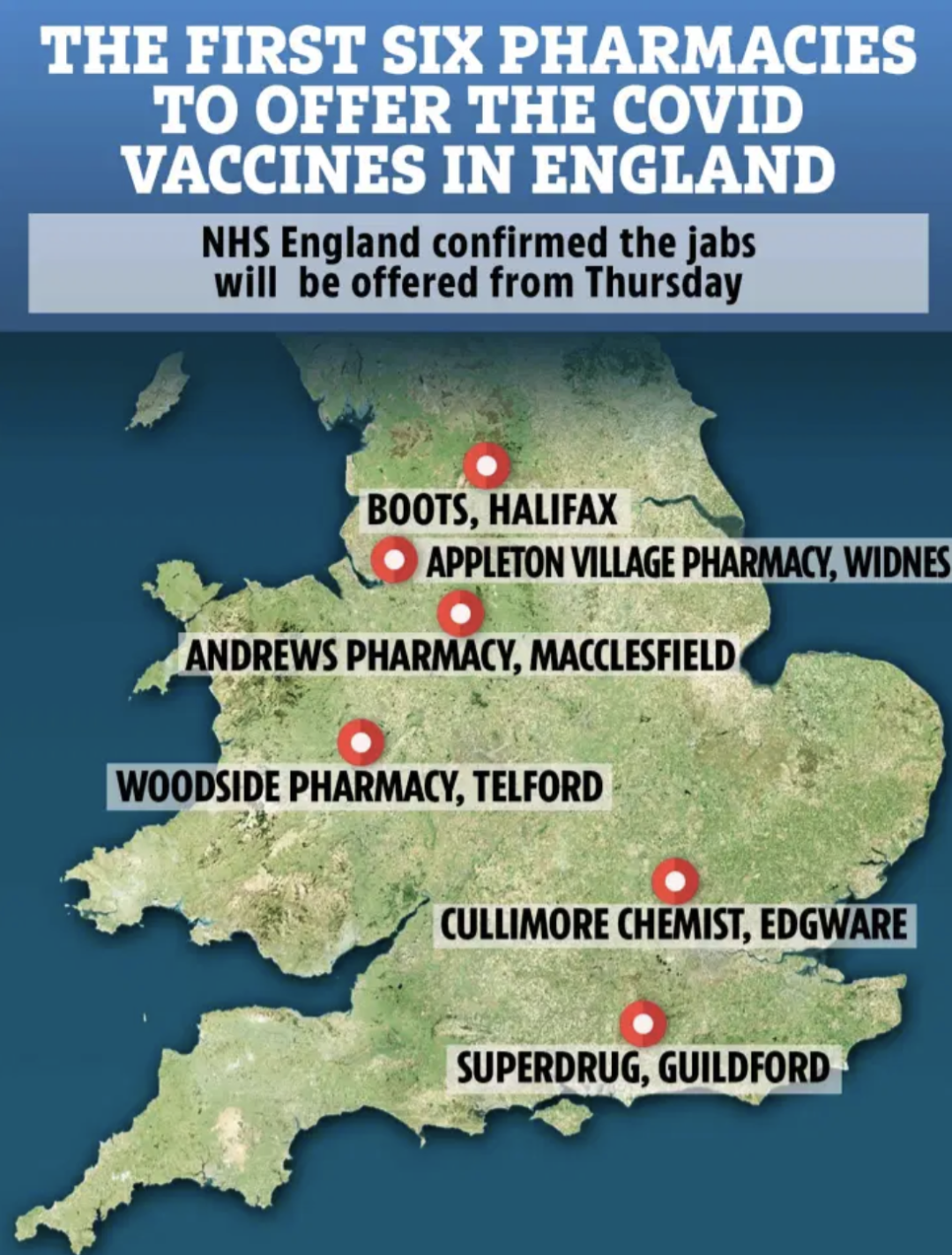 此外,NHS England还表示——超过200个高街药店接种点将在本月底之前建立并运行。