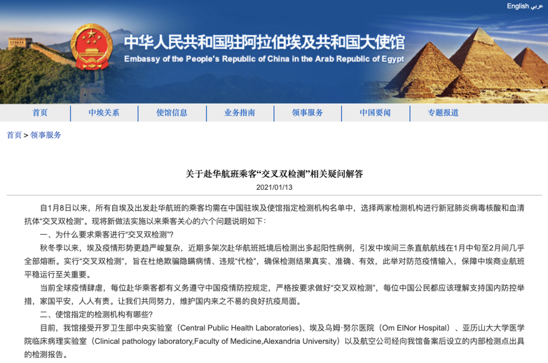 在目前新冠疫情的影响下,多个国家驻中国大使馆开始实行交叉双检测,也就是大家所说的“双阴”变“四阴”。