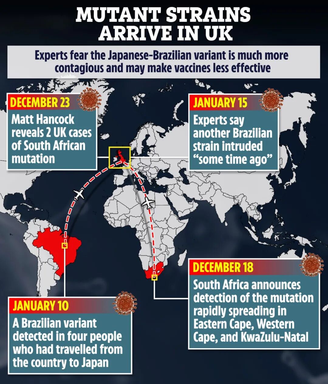 1月14日(周四),交通部长Grant Shapps宣布了紧急停止来自南美各国的航班,以减少巴西新冠变种的潜在传播可能性。由于葡萄牙与巴西有紧密联系,因此同时也暂停从葡萄牙出发的旅行。