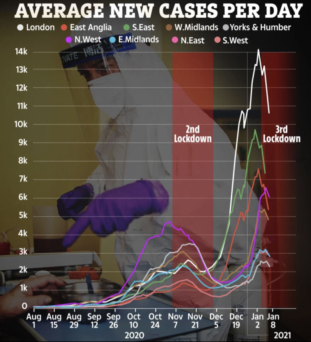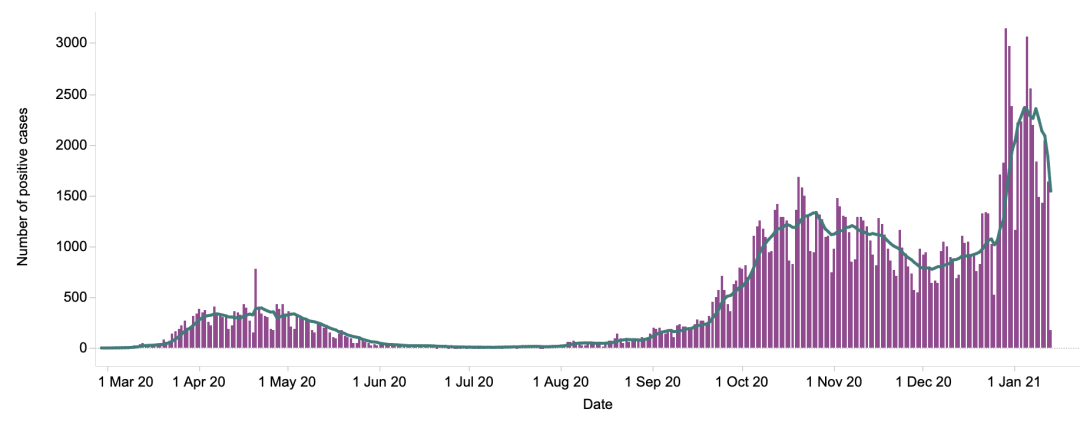 英国日增确诊案例趋势图