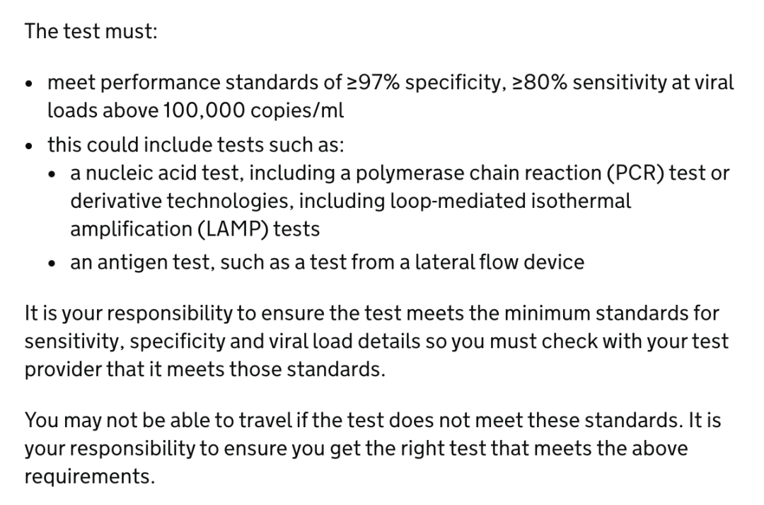 英国官方对检测的要求如下: