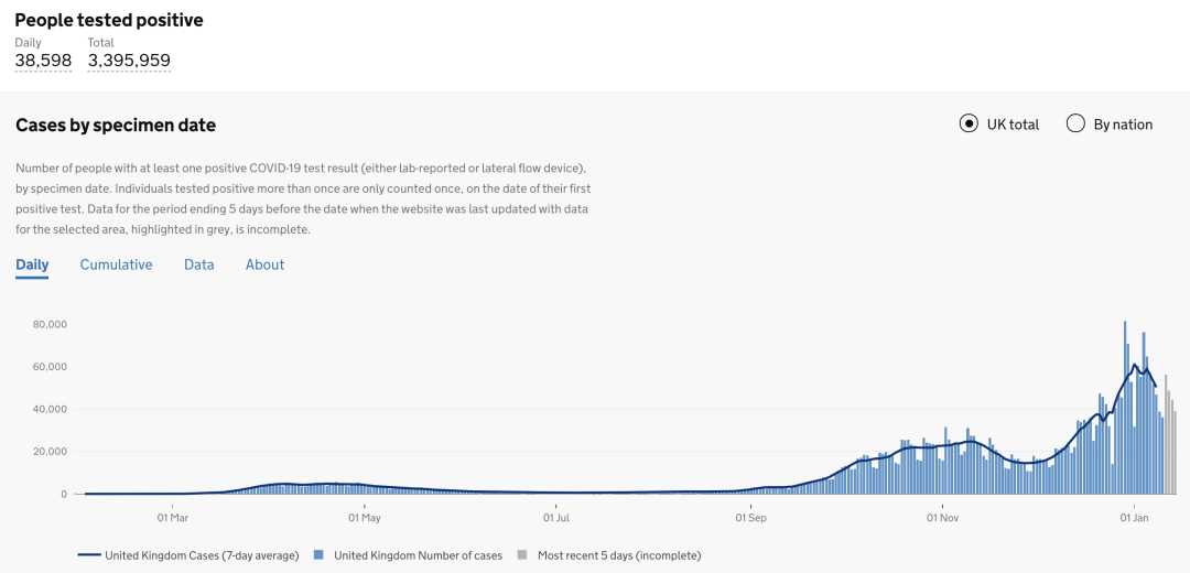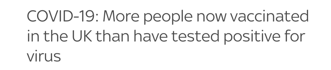 根据最新政府数据显示,英国目前已经有超过350万人接种了新冠病毒疫苗,而这个数据已经超过了国内新冠病毒检测阳性的人数——330万。