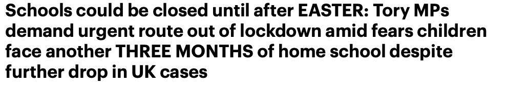 尽管英国新冠病例再次下降,但学校高层表示,数百万学生在家上学的情况可能持续,直到4月初。这意味着学生将面临近一年的线下教育中断。