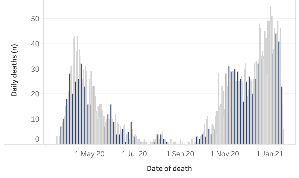 英国全境截至今日,已接种第1剂疫苗共4,973,248人(+363,508);已接种第2剂疫苗共464,036人(+3,411)。
