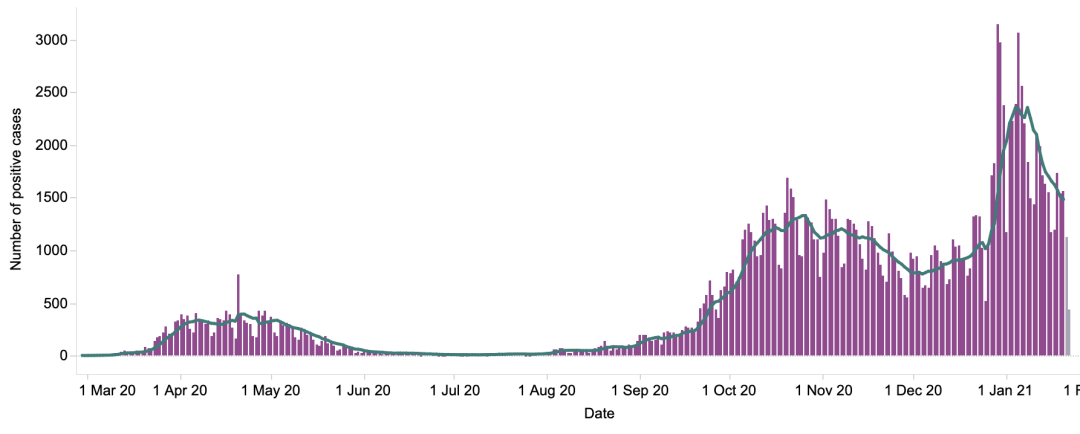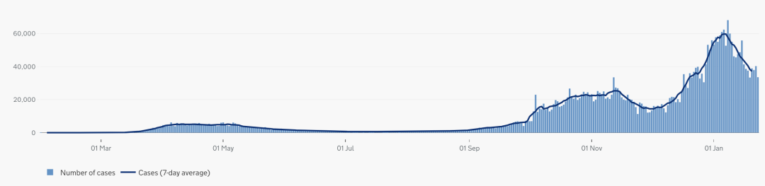 英国日增确诊案例趋势图