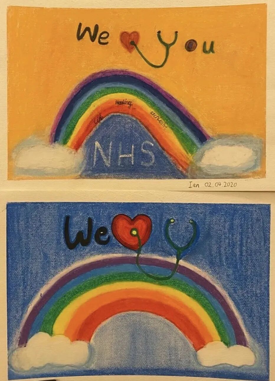 来自英国各地甚至全球各地的小朋友们也用自己手中的画笔,传递对NHS“白衣天使”辛苦付出的感恩。