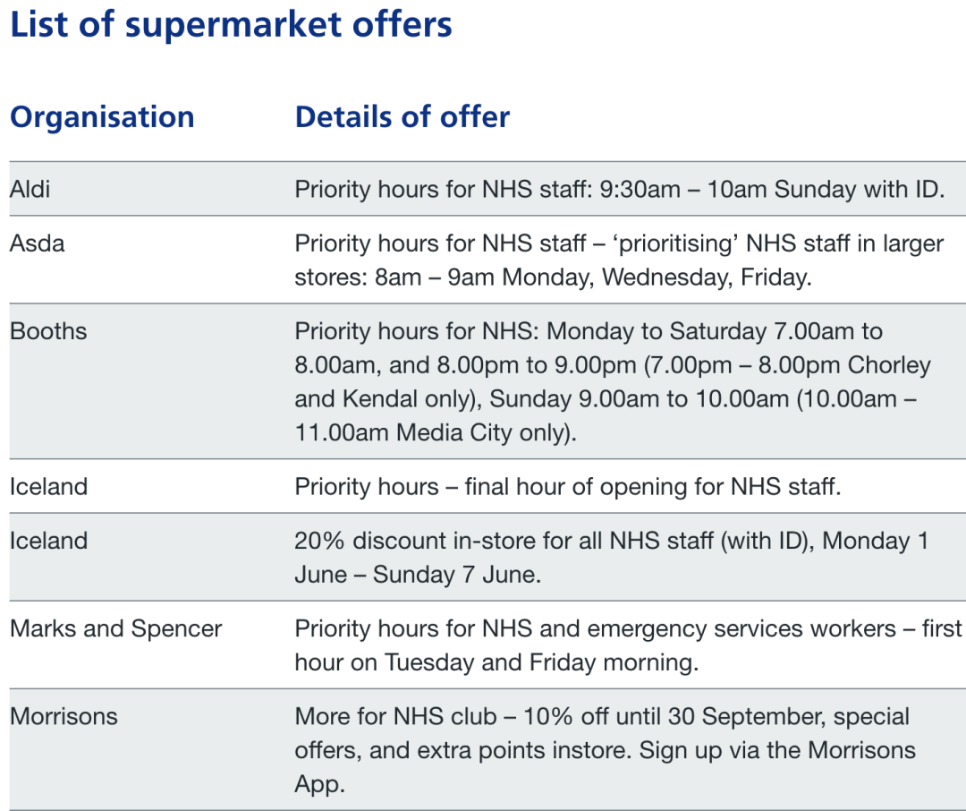 只要是NHS的员工就可以获得超市及各大网站的专属优惠。比如deliveroo、Morrison、Asda等。