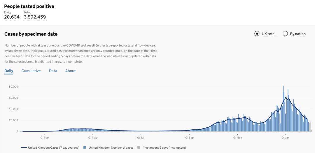 截止至2021年2月4日(周四)英国时间09:00,累计检测结果量72,464,146次(+801,949);累计确诊3,892,459例(+20,634);累计病亡110,250例(+915)。