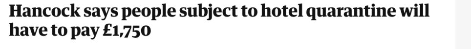英国卫生大臣Matt Hancock已经确认,入境隔离费用为每人£1,750,其中包括酒店、交通和新冠病毒测试的费用。该预订系统将于周四(2月11日)上线。