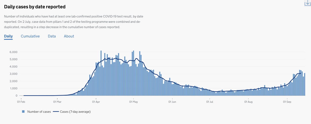 英国日增确诊案例趋势图