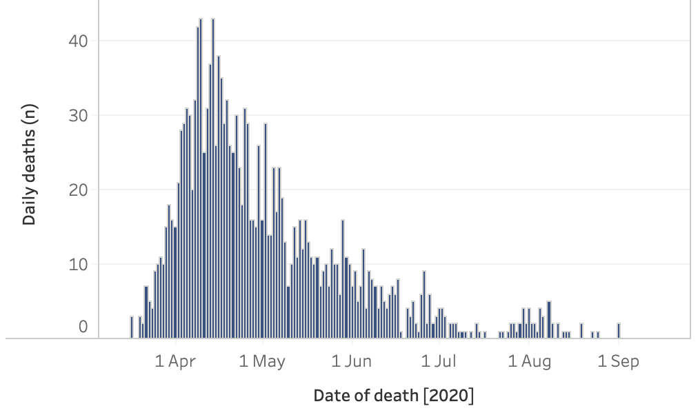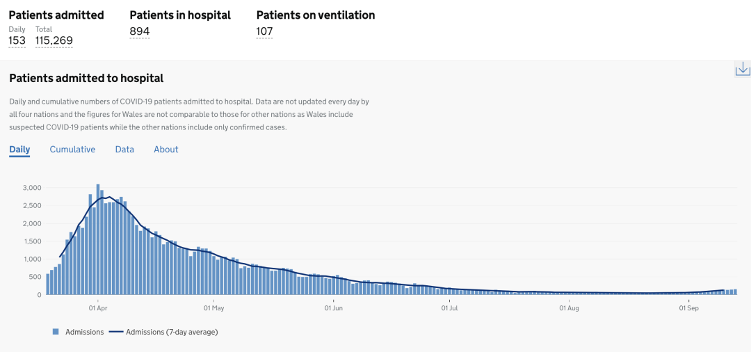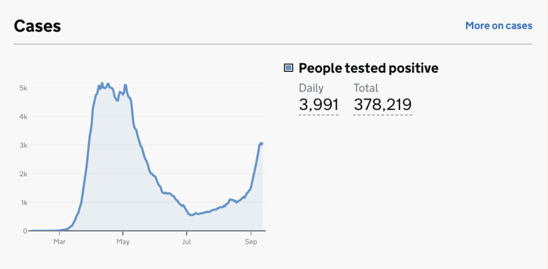 截止至2020年9月16日(周三)英国时间09:00,累计检测结果量20,521,243次(+227,075);累计确诊378,219例(+3,991);累计病亡41,684例(+20)。