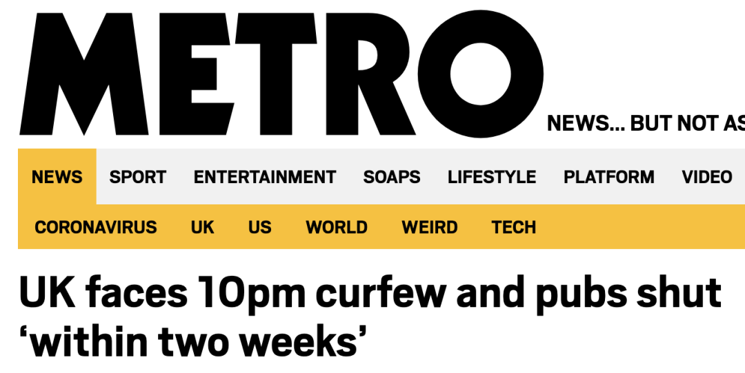据悉,为了避免第二波疫情的到来,议员们正在考虑在全英范围内对公众实施晚上10点的宵禁Curfew,并提前关闭酒吧。一位科学顾问向iTV明确表态:坦白来讲,封锁是我们知道唯一有效的方法。