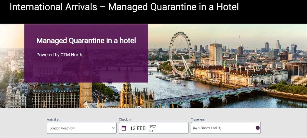 酒店及测试包均在政府预定官网进行:https://quarantinehotelbookings.ctmportal.co.uk/