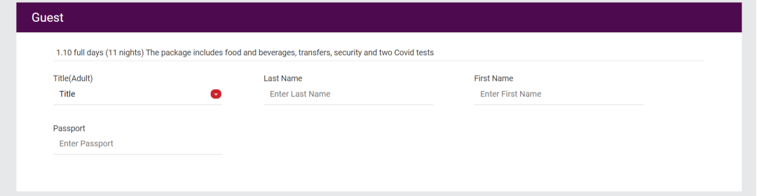 第一步——进入预定测试包网站,需填写国家,旅行人数以及入境机场,费用为 £210