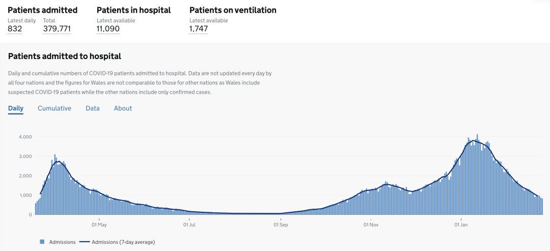 2月28日数据:目前住院的确诊新冠患者11,090人(-691),累计住院新冠患者总数为379,771人(+832)。