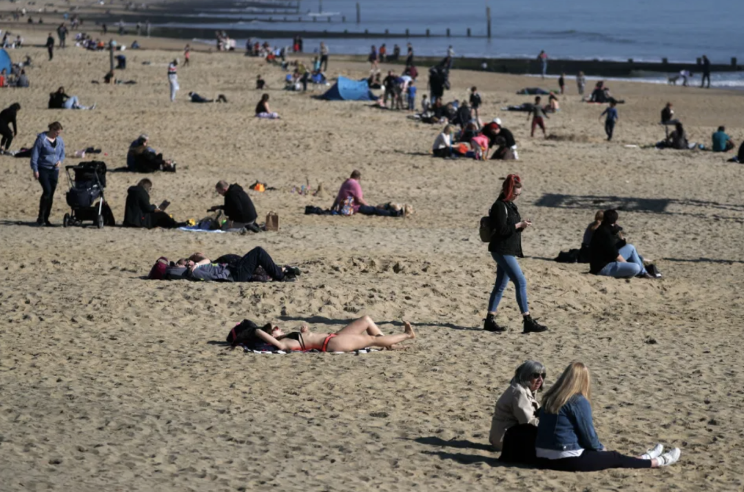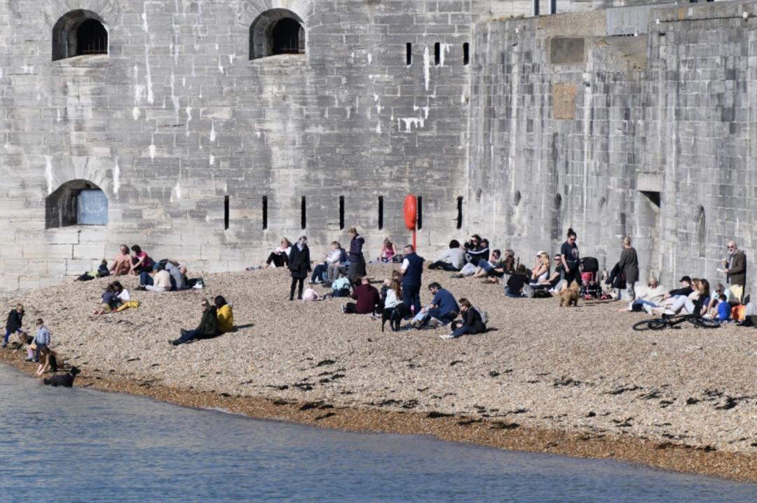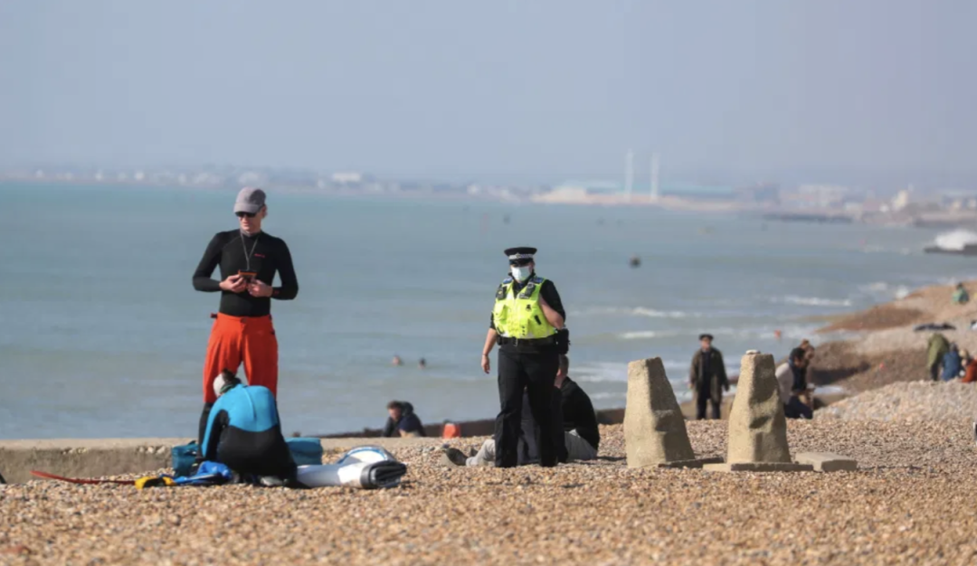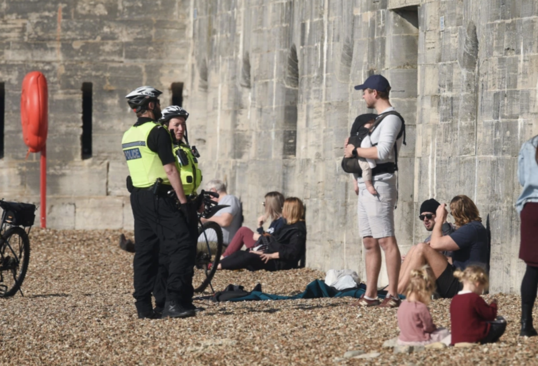不仅仅是伦敦,英国各地的警察都因为周末大量人群在户外聚集而维护秩序:比如在布莱顿、朴茨茅斯,警察们就上前阻止了多个在海滩上晒太阳的家庭们和一群又一群友人。