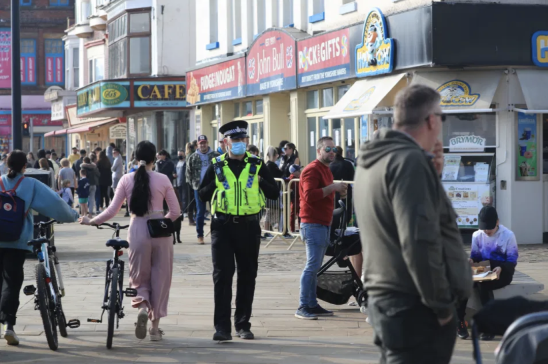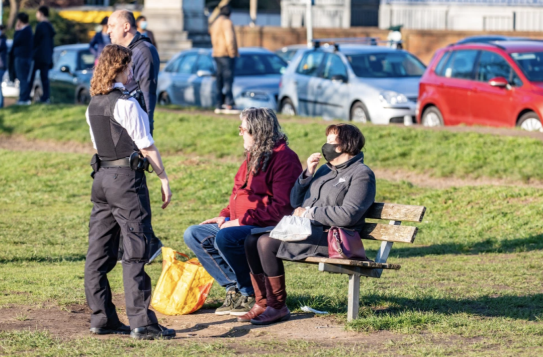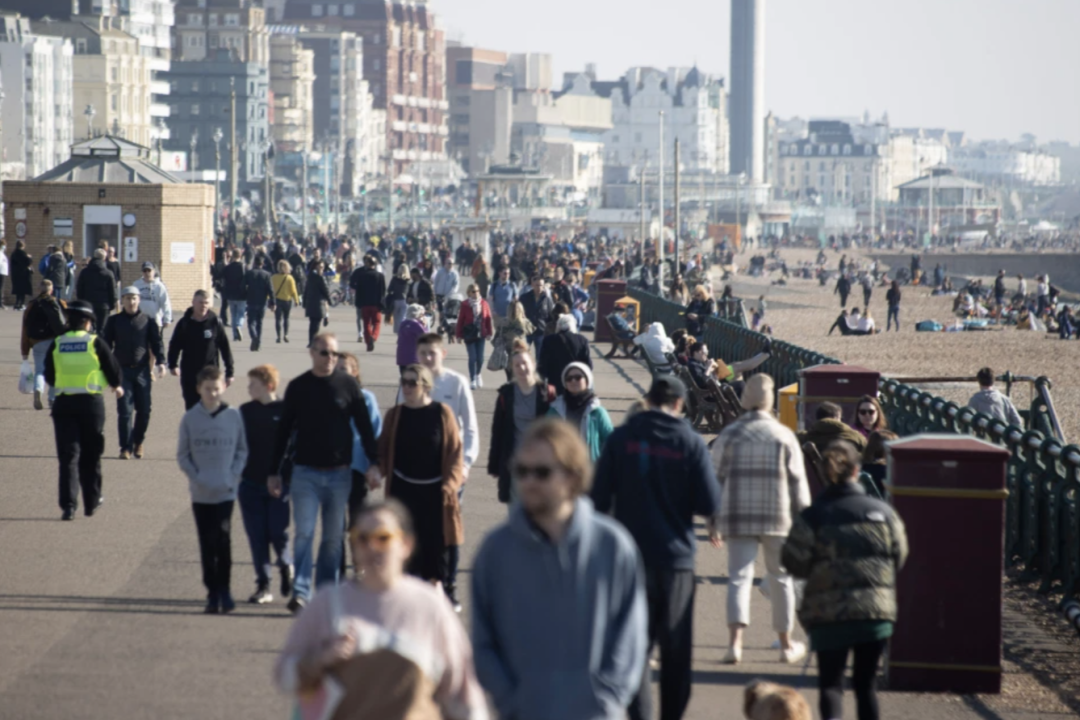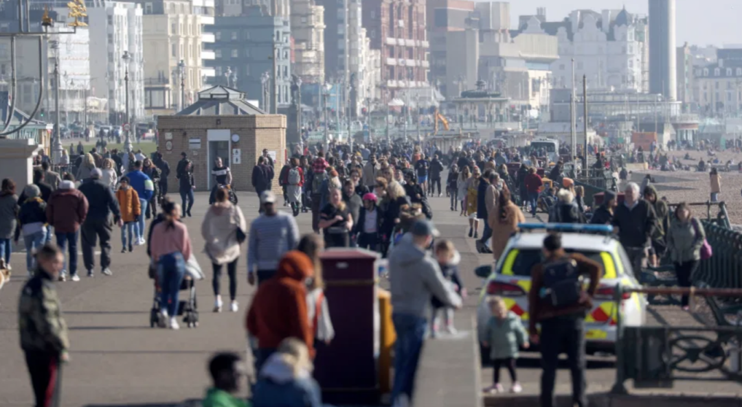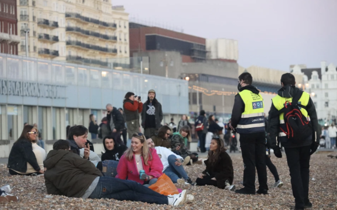 不仅仅是伦敦,英国各地的警察都因为周末大量人群在户外聚集而维护秩序:比如在布莱顿、朴茨茅斯,警察们就上前阻止了多个在海滩上晒太阳的家庭们和一群又一群友人。