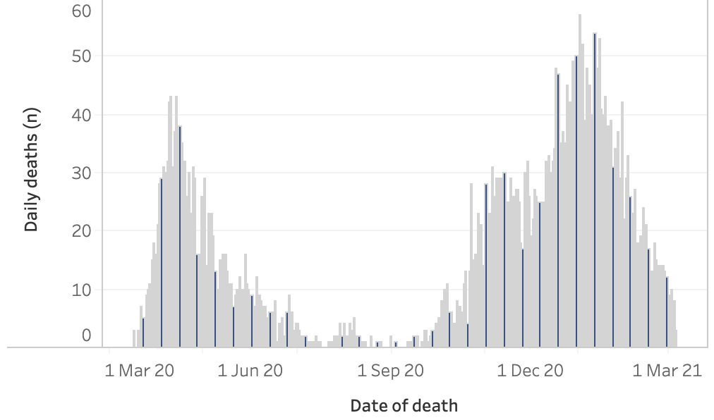 虽然由于处理数据的滞后,周日公布的确诊和死亡数据往往低于工作日,但死亡人数的下降非常鼓舞人心——这表明疫苗计划和封锁都在缓解疫情。