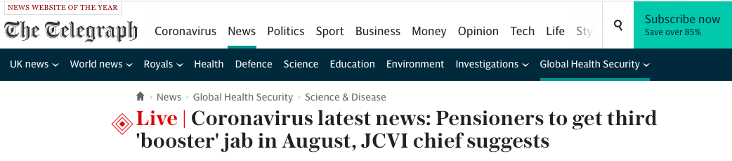 一位高级政府疫苗接种顾问表示,针对某些弱势群体或整个英国人口的Covid-19加强型疫苗很可能在秋季推出,以避免冬季的再一次感染高峰。