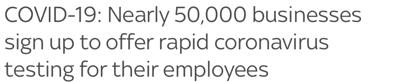 卫生部长Matt Hancock宣布,近5万家企业已经报名参加由政府提供的免费工作场所新冠检测。