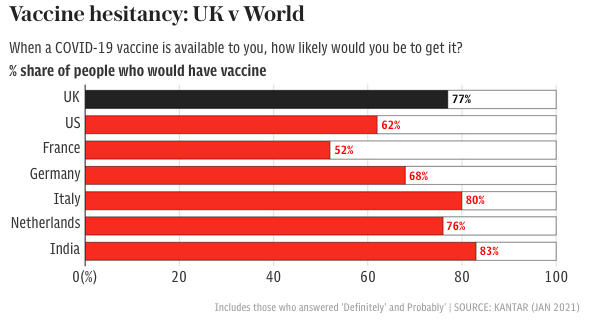 英国全境截至今日,已接种第1剂疫苗共23,684,103人(+370,078);已接种第2剂疫苗共1,532,754人(+87,676)。