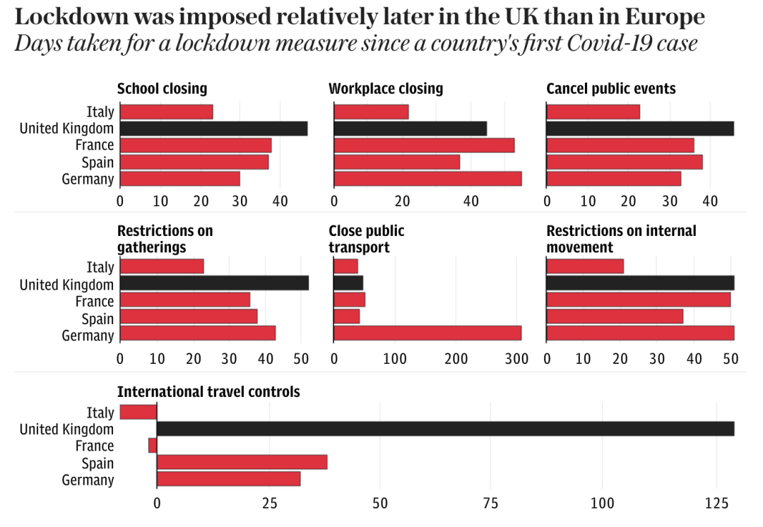 英国内政部认为,英国每年入境人数为1.45亿人——即便这是个较小的数字,也几乎是法国的两倍,这意味着在政府意识到疫情危险之前,病毒在英国默默播种的机率非常高。