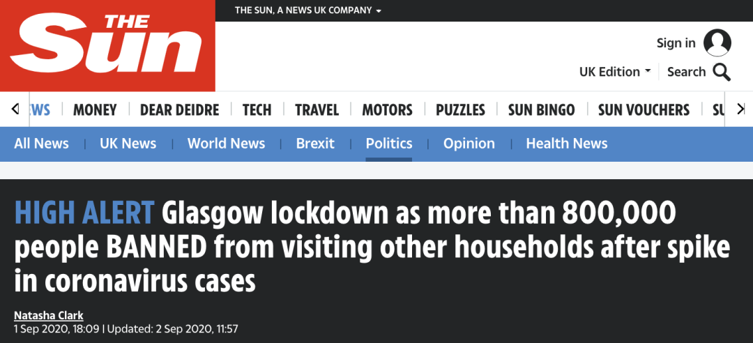 9月1日(周二)晚间,苏格兰第一大臣Nicola Sturgeon宣布对格拉斯哥地区进行封锁。在周二和周三这两日当中,苏格兰地区共新增确诊314例,其中大格拉斯哥地区新增确诊就有135例。