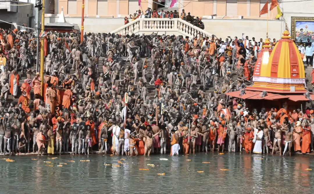 一年一度的Kumbh Mela节已经从3个月缩短到30天,本月早时的一天就吸引了超过300多万朝圣者,参与者大多都没有佩戴口罩。