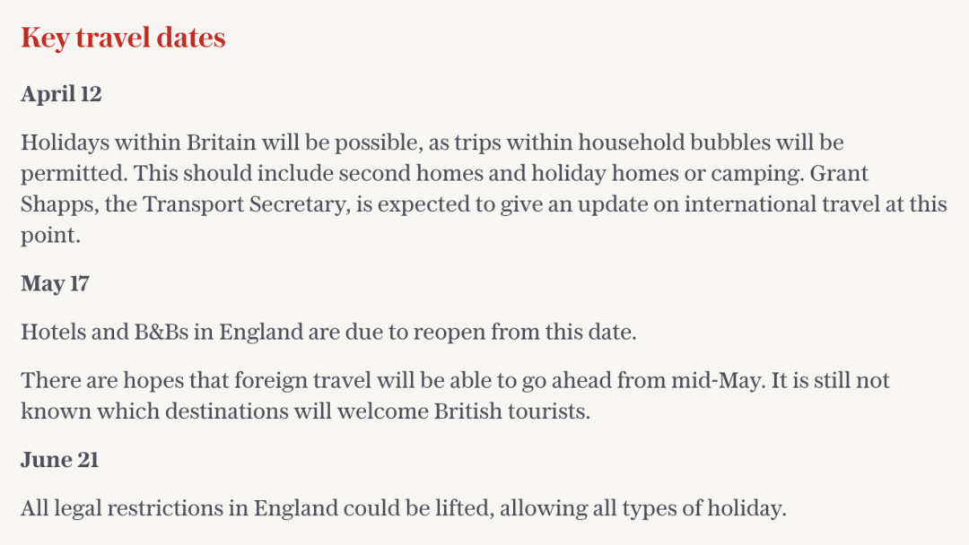 【6月21日】理想状况下,英国的所有法律限制都可以取消,允许各种类型的假期。