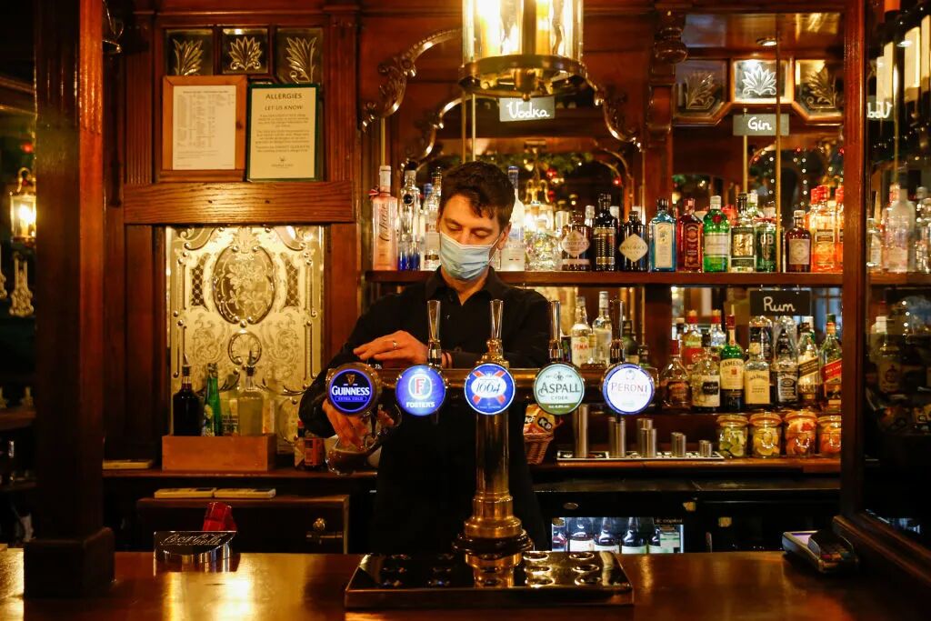 从4月12日开始,酒吧将被允许重新在户外开放,各地都可以在街道上摆设桌椅,每个人都可以在户外喝一品脱。