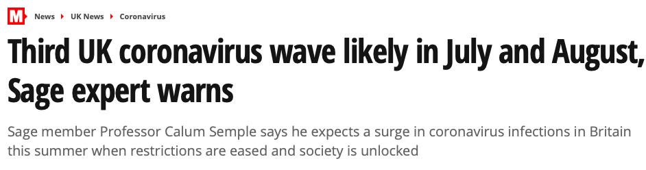 英国预计在将来某个时间点出现新一波新冠疫情,感染主要发生在未接种疫苗的人群中。但一些科学家表示,这要到秋季或冬季才会出现。