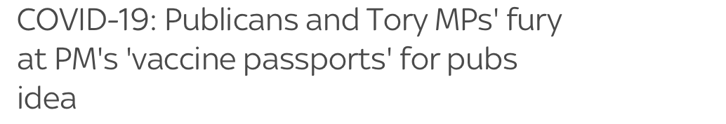 但在最新发言中,英国首相鲍里斯(Boris Johnson)提到,顾客可能需要提供新冠病毒疫苗接种证明才能去酒吧。