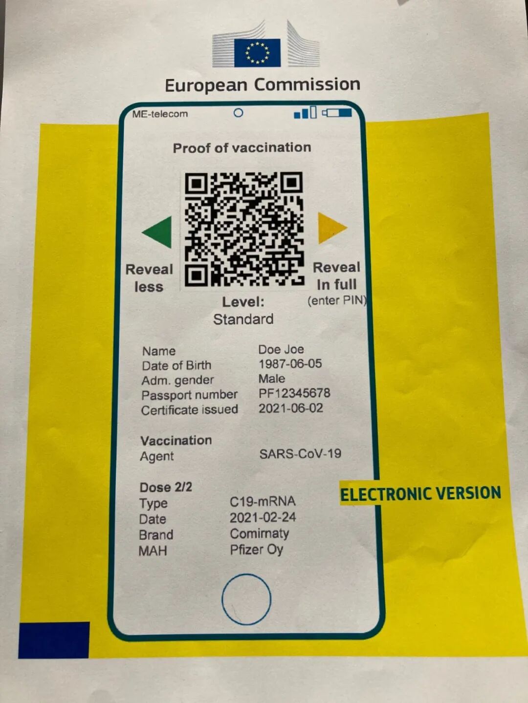 Breton专员在接受采访时介绍了疫苗护照的样本,内容信息将包括姓名、出生日期、签发日期、疫苗接种情况/时间/地点、抗体信息以及独特可扫描标识符等。