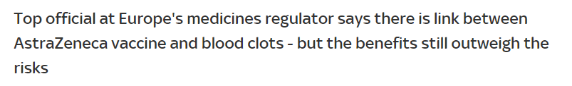 当被问及血栓报告是否会与疫苗有关时,Marco Cavaleri表示,"在我看来,我们现在可以说,显然与疫苗有关联。但是,是什么原因导致这种反应,我们仍然不知道。“