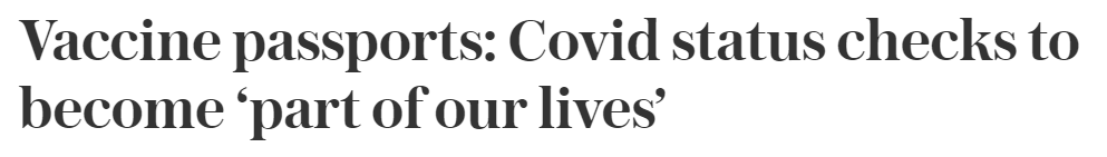 相关文件清楚地表明,政府正在积极研究如何利用新冠身份认证开放部分经济,目前,在英国范围内使用疫苗护照的想法与两个月前相比已经有了多进展。