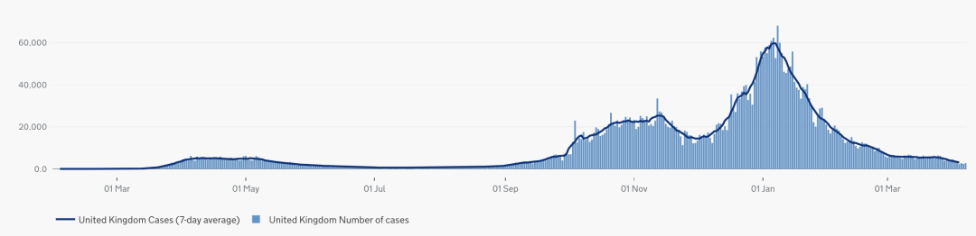英国日增确诊案例趋势图