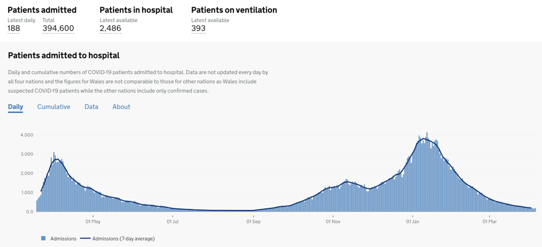 英国全境截至今日,已接种第1剂疫苗共31,807,124人(+99,530);已接种第2剂疫苗共6,091,905人(+408,396)。