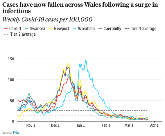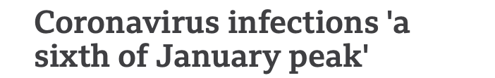 根据国家统计局的数据,英国目前的新冠感染率已下降至1月份高峰期的六分之一以下。