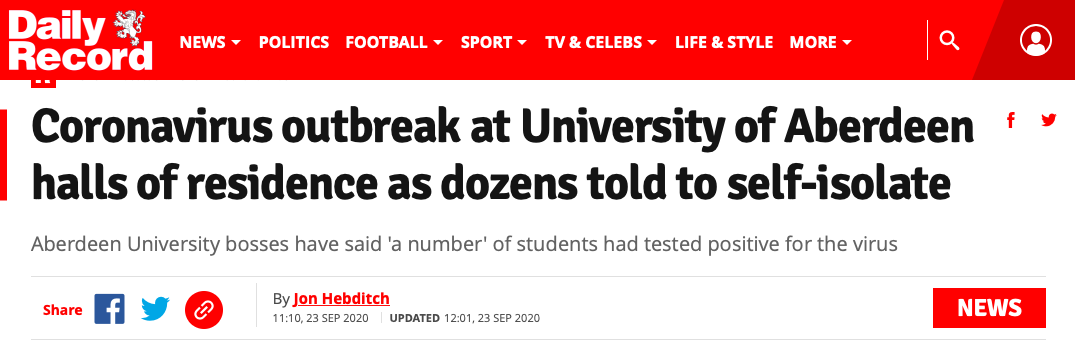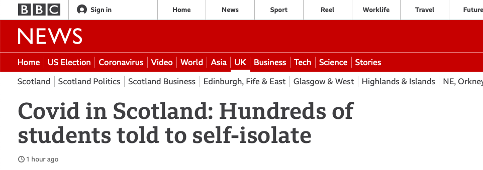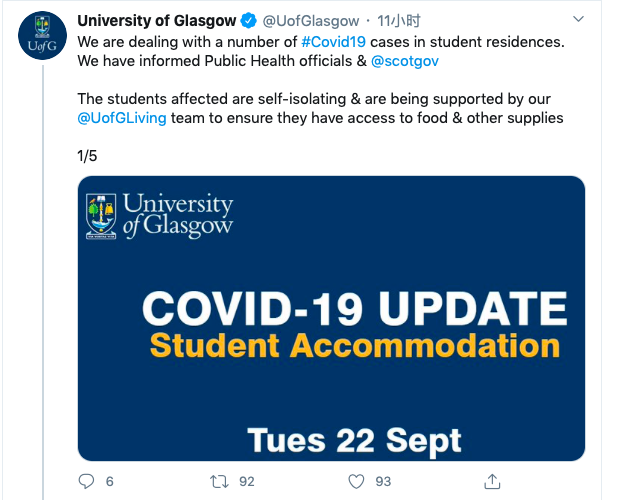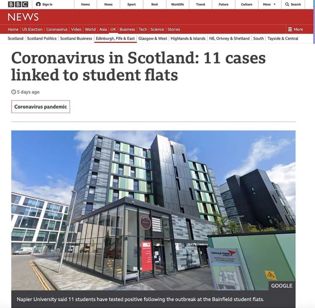 爱丁堡纳皮尔大学学生宿舍爆发疫情,11名学生检测呈阳性。该校校长声明,引起这些病例确诊的实际情况还尚未确定,所有没有被要求自我隔离的学生和工作人员都应该继续正常上课。