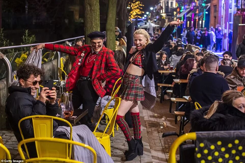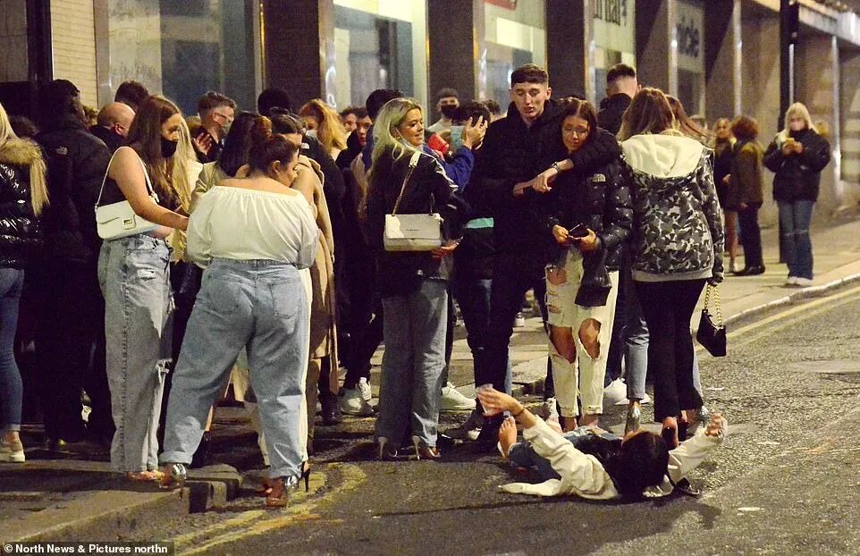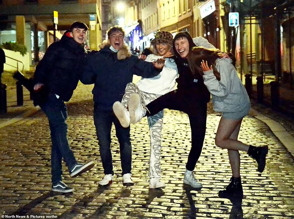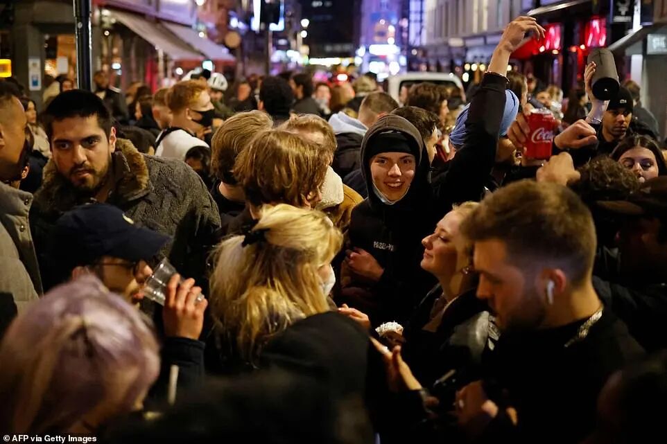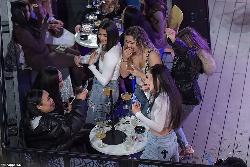 随后,英格兰各地的狂欢者们也提前享受了重归自由首日的夜晚——英国人涌回英国的酒吧和酒吧,喝下了四个月来的第一杯来自酒吧的,简直是开心得不得了。
