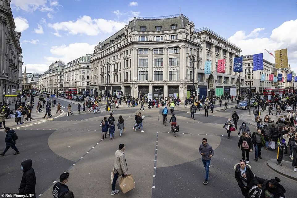 4月12日解封的白天,英国各地已经呈现非常繁忙的状态,伦敦牛津街,以及曼彻斯特、伯明翰等其他大城市出现了人满为患的状态,各城市市中心也异常繁忙。