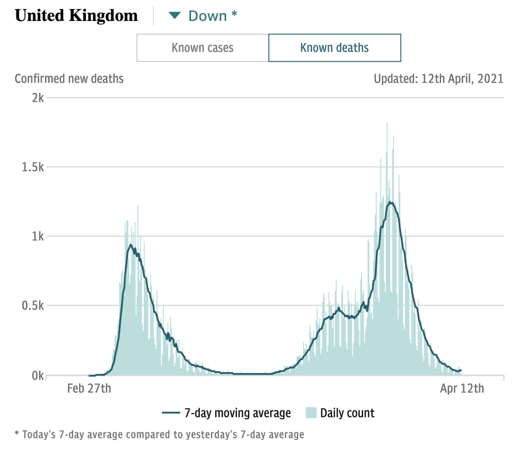 “但非常非常重要的是,每个人都要明白,疫情数字的降低,除了疫苗接种计划外,还有很重要的一个措施,那就是封锁。因此,解封后感染人数和住院人数上升是正常的。但希望人们在更自由的同时继续保持谨慎,遵循社会规则,疫苗效果也将会在未来几个月帮助英国持续保持疫情的稳定。”