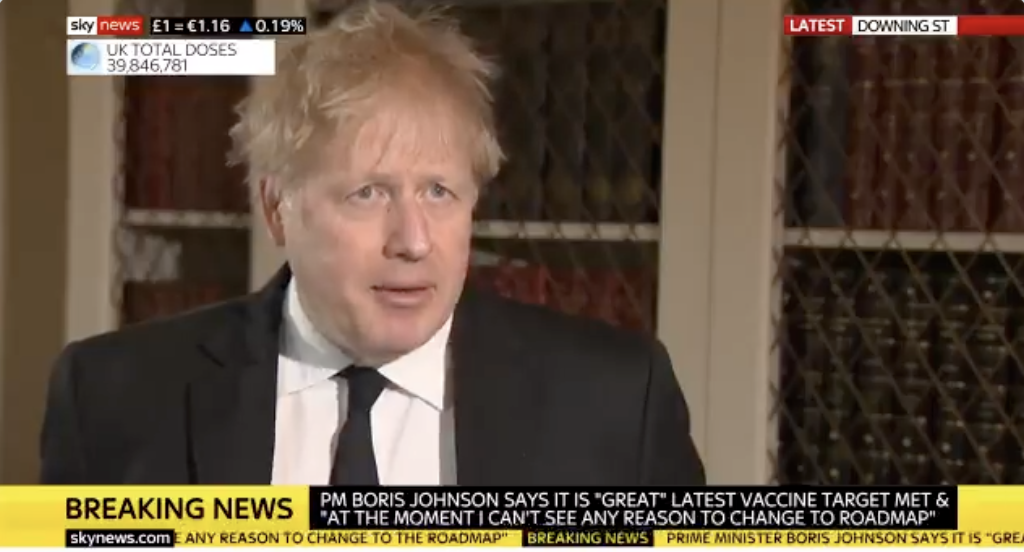 首相鲍里斯Boris Johnson说:“我们现在已经通过了疫苗计划的另一个非常重要的里程碑,为9个最高风险群体中的每个人提供疫苗注射;为此,我要感谢每一个参与疫苗推广的人,你们已经拯救了成千上万的生命。”